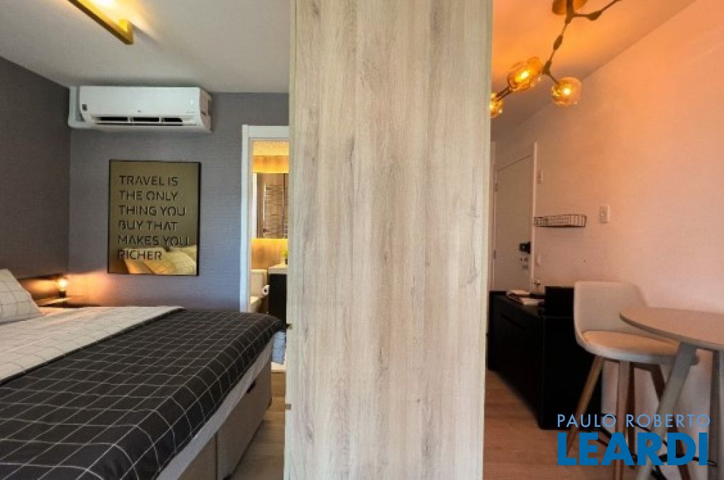 Apartamento moderno apto 1 dormitório, com 29m² todo decorado e mobiliado. Sala com sofá cama + tv 50 polegadas + bancada home office. Cozinha equipada com cooktop + forno elétrico + micro-ondas + geladeira + mesa 2 lugares. Quarto com cama baú queen + persiana blackout automatizada. Banheiro com ducha aquecida a gás + toalheiro aquecido. Ar condicionado. 1 vaga. Fechadura digital. Prédio moderno com excelente infraestrutura de salão de festa, salão de jogos, academia, piscina borda infinita, lavanderia, concierge e portaria 24h.